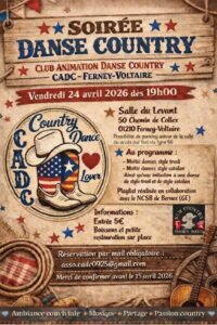 Accueil » Événements » (01) FERNEY VOLTAIRE / SOIREE COUNTRY DANCE LE 24.04.26.