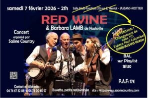 Le Samedi 07 Février 2026, Soirée Country avec Concert des *Red Wine & Barbara Lamb de Nashville*,