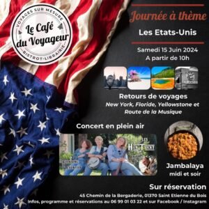 Le Samedi 15 Juin 2024, Journée à Thème *Les Etats Unis*, à partir de 10h00, avec Concert en Plein air, Repas Jambalaya midi et soir, 45, Chemin de la Bergaderie, à St Etienne du Bois (01370), Ain.