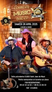 Le Samedi 26 Avril 2025, Journée Country de 13h30 à 00h00, Salle Polyvalente de St Jean de Niost (01800), Ain.