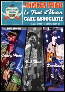 Le Dimanche 29 Mars 2026, Journée St Patrick de 10h00 à 20h00, avec Concert de *Chicken Fried* Le Trait D’Union, Café Associatif, , à St S