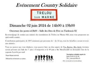 Le Dimanche 02 Juin 2024, Après Midi Country Dance, de 14h00 à 19h00, (en Témoignage de Soutien aux Sinistrés des Inondations de Trélou sur Ma