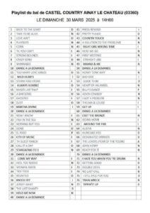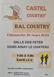 Le Dimanche 30 Mars 2025, Après Midi Bal Country chez *Castel Country*, de 14h00 à 19h00, Salle des Fetes de Ainay le Chateau (03360), Allier.