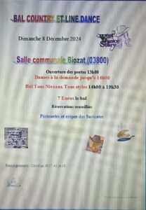 Accueil » Événements » (03) BIOZAT / APRES MIDI BAL COUNTRY LINE DANCE LE 08.12.24.