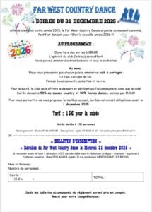 Le Mercredi 31 Décembre 2025, Soirée Réveillon 50% Country et 50% toutes danses, à , chez *Le Far West Country Dance*, Salle Polyvalente du Bru