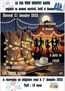 Le Mercredi 31 Décembre 2025, Soirée Réveillon 50% Country et 50% toutes danses, à , chez *Le Far West Country Dance*, Salle Polyvalente du Bru