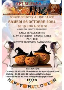 Accueil » Événements » (06) CAGNES SUR MER / SOIREE COUNTRY ET LINE DANCE LE 26.10.24.