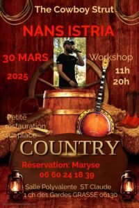 Le Dimanche 30 Mars 2025, Journée Country chez *The Cowboy Strut*, de 11h00 à 20h00, avec Workshop , Salle Polyvalente St Claude, 1 Chemin des Gardes, à Grasse (06