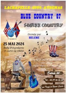 Le Samedi 25 Mai 2024, Soirée Country animée par *Hélène*, à 19h30, Salle Polyvalente de Lachapelle sous Aubenas (07), Ardèche.