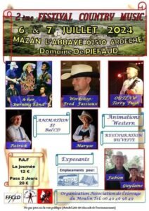 Accueil » Événements » (07) MAZAN L’ABBAYE / FESTIVAL COUNTRY MUSIC ET DANCE LES 06 ET 07.07.24.