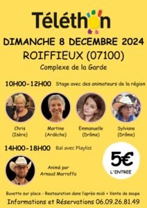 Le Dimanche 08 Décembre 2024, Journée Country Line Dance pour le Téléthon, à partir de 10h00, avec Stages et Bal animé par *Arnaud Marraffa *, de 14h00 à 18