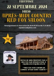Le Dimanche 22 Septembre 2024, Après Midi Country Dance, Ambiance Honky Tonk, animée par *DJ Jean Chris*, au*Red Fox Saloon *, à