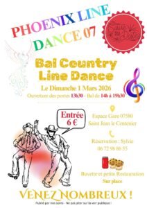 Le Dimanche 1er Mars 2026, Après Midi Country Line Dance des *Phoenix Line Dance 07*, de 14h00 à 19h30, Espace Gare à St Jean le Centenier (07580), Ardèch