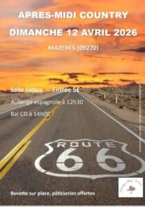 Le Dimanche 12 Avril 2026, Après Midi Bal Country cd à 14h00, Salle Fébus, à Mazeres (09270), Ariège.