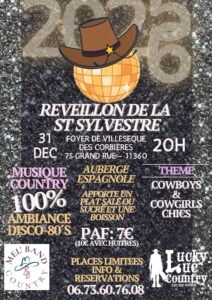 Le Mercredi 31 Décembre 2025, Soirée Réveillon à 20h00, Foyer de Villeseque des Corbieres, 75 Grand Rue, (11360), Aude.