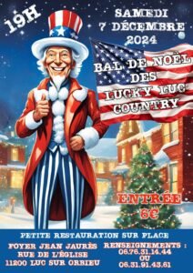 Le Samedi 07 Décembre 2024, Bal Country de Noel des *Lucky Luc Country*, à 19h00, Foyer Jean Jaurès, rue de L’église, à Luc sur Orbieu (11200), Aude.