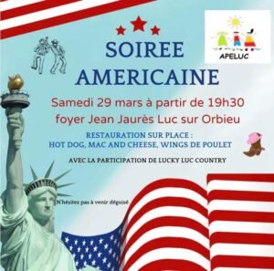 Le Samedi 29 Mars 2025, Soirée Americaine à partir de 19h30, avec *Lucky Luc Country*, au Foyer Jean Jaurès de Luc sur Orbieu (11200), Aude.