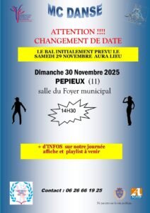Le Dimanche 30 Novembre 2025, Après Midi Bal Country des *MC Danse*, à 14h30, Salle duFoyer Municipal, à Pepieux (11), Aude.