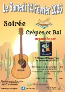 Le Samedi 14 Février 2026, Soirée Country Crepes et Bal, chez