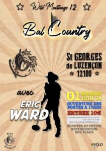Le Samedi 1er Juin 2024, Bal Country , animé par *Eric Ward*, chez *Wild Mustang*, à 19h00, à St Georges de Luzencon (12100), Aveyron.