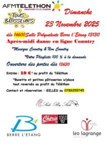 Le Dimanche 23 Novembre 2024, Après Midi Danse en Ligne Country pour le Téléthon , à 14h00, Salle Polyvalente de Berre L’etang (13130), Bouches du