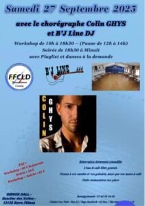 Le Samedi 27 Septembre 2025, Journée Line Dance à partir de 10h00, avec Workshop de *Colin Ghys* et B’J Line DJ , au Gibson’s Hall, Quartier des Voltes, à Berre L’etang (13130), Bouches du Rhone.