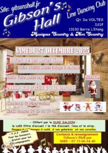 Le Samedi 27 Décembre 2025, Soirée Line Dance Club de Noel, à partir de 16h30, avec Bal Playlist Vintage et Bal Playlist à la demande, au Gibson’s Hall , Quartier des Voltes, à Berre l’étang (13130), Bouches du Rhone.