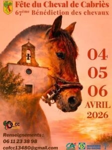 Du Samedi 04 au Lundi 06 Avril 2026, aura lieu la Fête du Cheval 67ème Bénédiction des Chevaux, à Cabriès- Calas (13480), Bouches du Rhône.