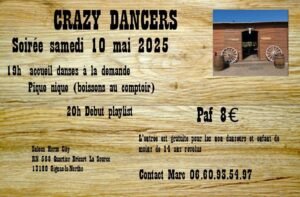Le Samedi 10 Mai 2025, Soirée Country à 20h00, chez Les *Crazy Dancers*, au Saloon Horse City, RN 568, Quartier Bricart La Source, à Gignac la Nerthe (13180), Bouches du Rhon