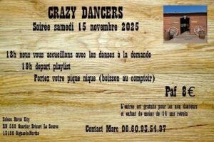 Le Samedi 15 Novembre 2025, Soirée Country des *Crazy Dancers*, à 19h00, au Saloon Horse City, RN 568, Quartier Bricart La Source, à Gognac la Nerthe (13180), Bouches d