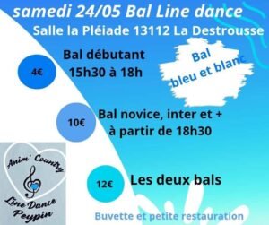 Line Dance vous sont Proposés à partir de 15h30, chez *Anim’Country Line Dance Peypin*, Salle La Pléiade, à La Destrousse (13112), Bouches du Rhone.
