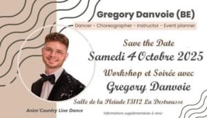 Le Samedi 04 Octobre 2025, Journée Line Dance avec Workshop et Soirée avec *Gregory Danvoie*, chez *Anim’ Country Line Dance*, Salle de la Pleiade, à La Destrousse (13112), Bouches du Rhone.