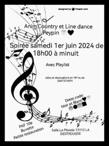 Accueil » Événements » (13) LA DESTROUSSE / SOIREE COUNTRY ET LINE DANCE LE 01.06.24.