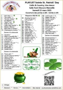 Le Samedi 22 Mars 2025, Soirée St Patrick Day chez *Country Story Tour*, à 19h00, Salle Font Obscure , 50 Avenue Prosper Mérimée, à Marseille (13014), Bouches du Rhone