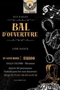 Le Samedi 29 Novembre 2025, Après Midi Bal Line Dance des *Sun Eagles *, à 13h00, Salle Colomb, à Miramas (13140), Bouches du Rhone.