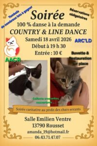 Le Samedi 18 Avril 2026, Soirée Country et Line Dance au Profit des Chats Errants, à 19h30, Salle Emilien Ventre, à Rousset (137