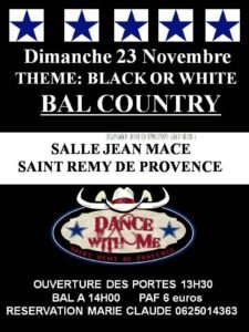 Le Dimanche 23 Novembre 2025 , Après Midi Bal Country sur le Thème *Black Or White*, à 14h00, Salle Jean Macé, à St Rremy de Provence (13) Bouch
