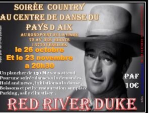 Le Samedi 26 Octobre 2024, Soirée Country de *Red River Duke*, à 20h30, au Centre de Danse du Pays D’Aix, Rond Point de la Gare, 73, Avenue des Ribats, à Venelles (13770), Bouches d u Rho