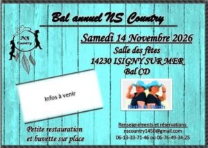 Le Samedi 14 Novembre 2026, Bal Country annuel des *NS Country * Salle des Fêtes de Isigny sur Mer (14230), Calvados.