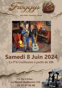 Le Samedi 08 Juin 2024, Soirée Concert du Duo *Froggus*, Folk Country Rock , à 20h00, Le P’ti Guillaume, 715, Route D’Orbec, à Le