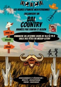 Le Dimanche 26 Octobre 2025, Après MidiBal Country animée *Fanfan et Alison*, de 14h00 à 19h00, Salle des Fetes du Molay Litry (14330), Calvados.
