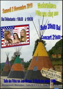 Le Samedi 02 Novembre 2025, Soirée Country des *Westerndance*, qui Feteront leurs 5 ans, avec un Bal Débutants de 18h30 à 19h30, un Bal à 20h00, et un Concert à 21h00, Salle des Fetes, rue Jean Mermoz, à St Martin des Entrées (14400), Calva