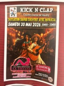 Le Samedi 30 Mai 2026, Soirée Country des *Kick N Clap Country Dance *, de 20h00 à 22h00, Le Dancing Restaurant, à Vaudry (14) Calvados.