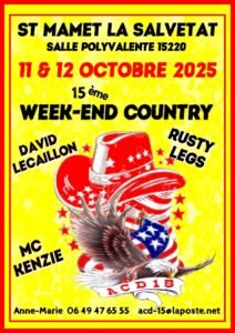 Accueil » Événements » (15) ST MAMET LA SALVETAT / 15 EME WEEK END COUNTRY LES 11 ET 12.10.25.