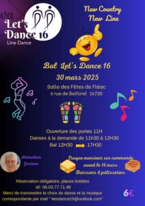Le Dimanche 30 Mars 2025, Après Midi Bal Country à partir de 11h30, Salle des Fetes, 06, rue de Belfond, à Fléac (16730), Charente.