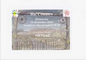 Le Dimanche 14 Décembre 2025, Après Midi Bal Country animée par *Nicole*, à 13h30, Salle Socio Culturelle de Hiersac (16290), Charente.