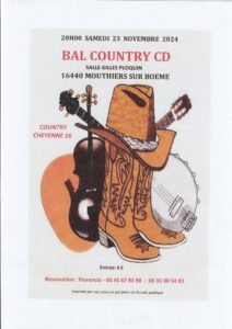 Le Samedi 23 Novembre 2024, Bal Country cd de *Country Cheyenne 16*, à 20h00, Salle Gilles Ploquin, à Mouthiers sur Boeme (16440), Charente.