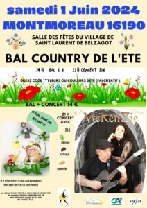 Le Samedi 1er Juin 2024, Bal Country Concert de *MC Kenzie *