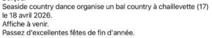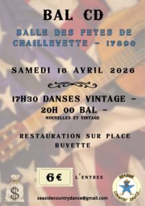 Le Samedi 18 Avril 2026, Bal Country chez *Seaside Country Dance*, à Chaillevette (17), Charente Maritime.