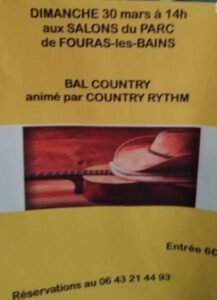 Le Dimanche 30 Mars 2025, Après Midi Bal Country animé par *Country Rythm*, à 14h00, aux Salons du Parc de Fouras les Bains (17450), Charente Maritime.